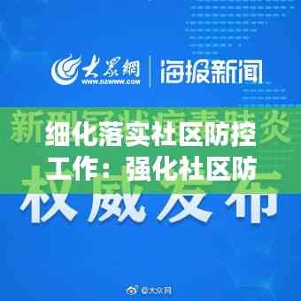 细化落实社区防控工作,是疫情防控的重要环节。通过加强组织领导、全面排查、严格隔离、宣传教育、物资保障、优化管理、心理疏导等多方面的措施,可以有效降低疫情传播风险,保障社区居民的生命安全和身体健康。在疫情防控的关键时期,我们要共同努力,共克时艰,为打赢疫情防控阻击战贡献力量。