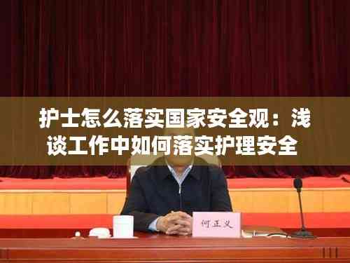 护士作为医疗卫生领域的专业人员,在落实国家安全观方面肩负着重要责任。通过提高安全意识、加强患者信息保护、参与疫情防控、提升专业能力、加强国际合作等措施,护士可以在实际工作中落实国家安全观,为国家的安全和发展贡献力量。
