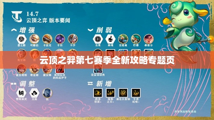 随着游戏产业的蓬勃发展,众多精彩游戏应运而生,云顶之羿》以其独特的游戏机制和丰富的游戏内容,吸引了大量玩家的关注和喜爱,随着第七赛季的来临,官方特别推出了“云顶之羿第七赛季专题页”,为玩家提供最新的资讯、攻略和互动体验。