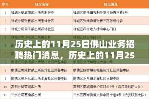 本文将详细介绍历史上的11月25日佛山业务招聘热门消息及其相关情况,我们将从产品的特性、使用体验、与竞品对比、优点和缺点以及目标用户群体分析等方面进行全面评价,以便读者更好地了解该招聘消息的特点和价值。