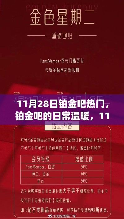 在喧嚣的都市中,有一个特别的角落——铂金吧,这里不仅是人们交流的地方,更是情感与友情的港湾,11月28日这天,阳光正好,微风不燥,铂金吧迎来了一天的温馨与欢乐,主人公小杨和他的朋友们在这里度过了一段难忘的时光。