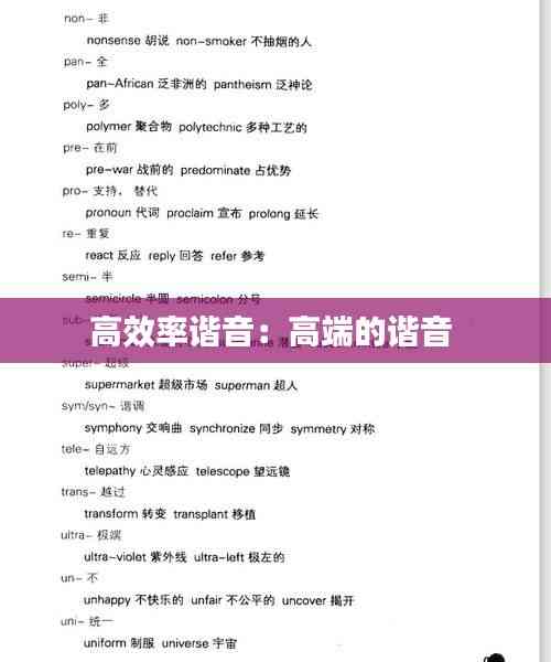 高效率谐音,顾名思义,是指在语言交流中巧妙地利用谐音现象,以达到高效沟通的目的。谐音,又称“双关语”,是指利用汉字同音或近音的特点,通过创造性地组合词语或句子,使原本的语义产生变化,从而产生幽默、讽刺或强调的效果。高效率谐音在日常生活中、广告宣传、文艺创作等领域有着广泛的应用。