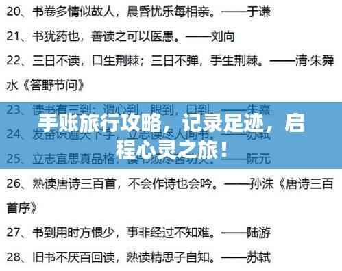 通过手账旅游攻略,你可以更好地规划、记录你的旅行,手账不仅可以帮你记录旅行的点点滴滴,还可以作为回忆的载体,在旅行前,做好充分的准备,将相关信息整理在手账中;在旅行过程中,及时记录见闻感受和照片;在旅行后,通过手账回顾旅行的美好时光。
